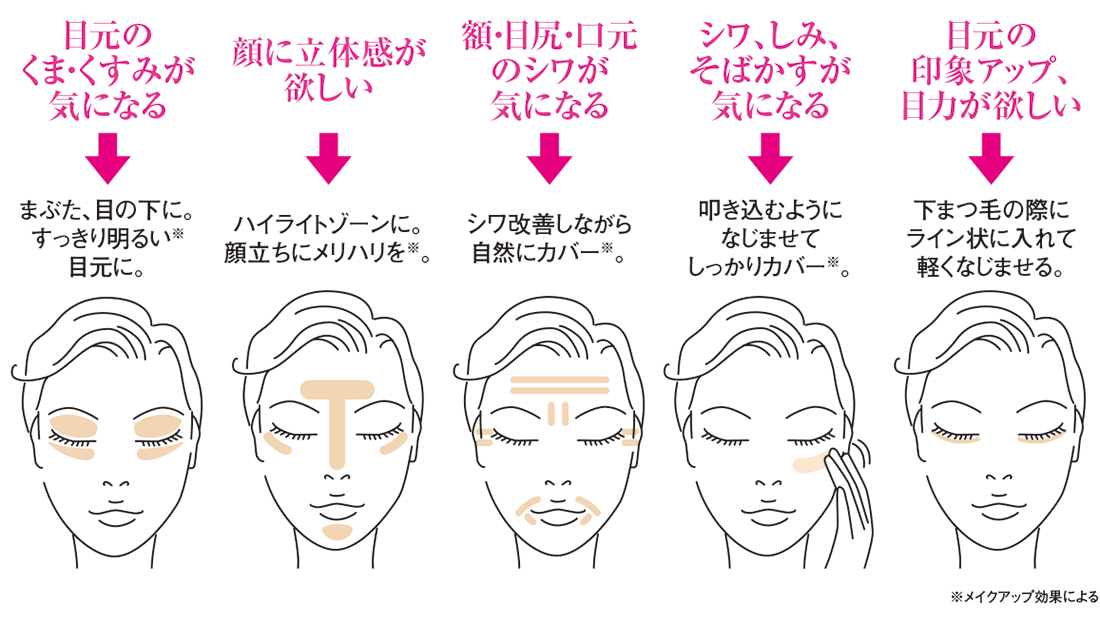 ※3、肌あれ防止、ツヤ、潤いなど、さまざまなケアをしながら、お肌の気になる部分をカバー